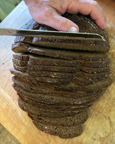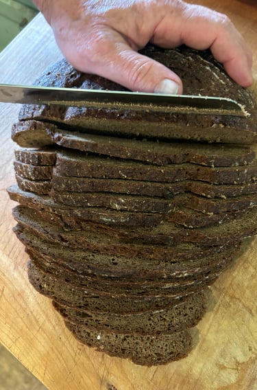 "Julie provided us with two loaves of cornmeal rye bread. The first was so great that it was gone too quickly. So, we froze the second. Weeks later, we tempted ourselves again, and even then, it didn't take long to be enjoyed with breakfast, lunch, and dinner and disappear too quickly. Yeah, we loved them!"